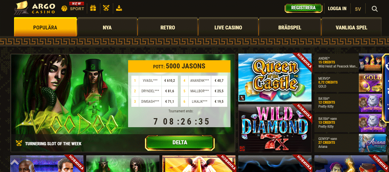 | ArgoCasino.com giver dig mulighed for at spille mere end 1500 spil fra Netent, Microgaming, Pragmaticplay, Amatic, NextGen, DC Comics, EACH, 1×2 Gaming, Lighting Box, Endorphina, Bet Digital, Thunderkick, Casino Tech, iGaming2Go. Argo Casino’s casino spil udvalg omfatter en række video slot og progressive spilleautomater. Populære titler som Dragonz slot, Victorious slot, Karaoke Party slot og Big Bad Wulf slot er blot nogle af de spilleautomater, der er tilgængelige i casinoets samling. Bord spil fans kan vælge mellem forskellige variationer af roulette, blackjack, baccarat, hold’em og craps. Tilbuddet varierer fra fransk roulette og britisk blackjack til blackjack overgivelse og pick’em poker. Video poker sektionen er ikke meget omfattende, men det omfatter Joker Poker, Deuces Wild, Jacks or Better og andre video poker varianter. Spillere, der søger specielle spil, finder et udvalg af skrabelod i casino tilbudet. Der er også dart, mahjong, bingo, keno og Wheel of Fortune spil i mixen. Spillere, der søger mere variation, kan også teste deres held på et udvalg af skrabelod og mikro spil. |