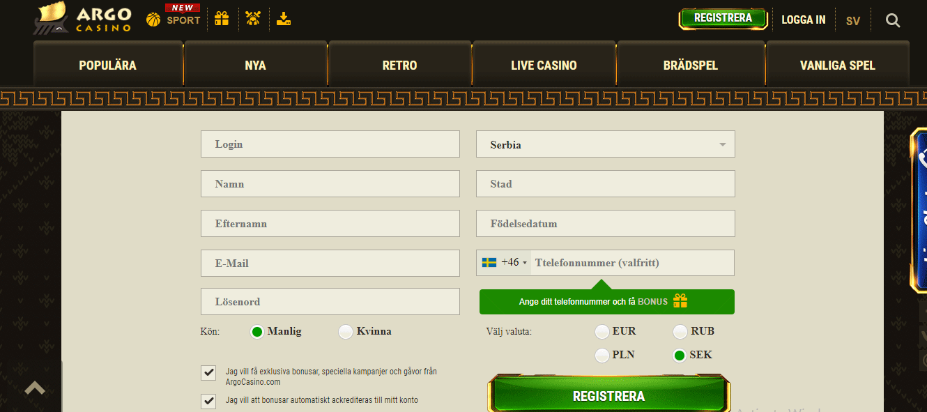 | Argo Casino er tilgængeligt på flere forskellige sprog, herunder: kinesisk, engelsk, tysk, polsk, svensk, ukrainsk, rumænsk, russisk og tyrkisk. |