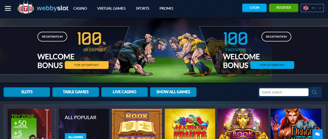 Webbyslot is an online casino and sportsbook with original idea, unique design and flexible bonus policy. The main idea of the project is that rugby is more than just a sport. The theme of rugby penetrates all bonus policy and loyalty program, each element and all site pages plunge into the amazing atmosphere of rugby and distinguish the project among other competitors. Here you can find all the most popular games providers and payment systems for better satisfaction of players needs and desires that make payment process even faster and more comfortable.